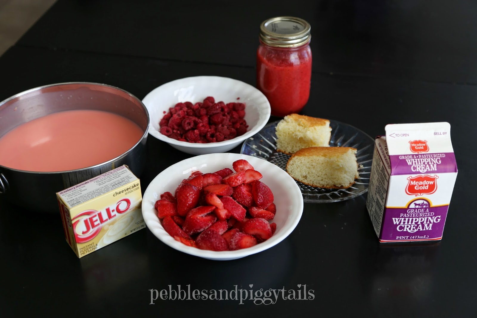 - Wash and pat the berries dry. Let them air dry while you prep the rest. Cut your cake into cubes, whip your cream, and make your pudding. Then start layering in a medium size bowl or trifle dish. Start with the pudding, then add cake cubes so they can soak in the pudding. Add the fruit and whip cream. To make it look pretty, stick the outer-edge row of to the glass in a nice line, alternating with strawberries, cake, raspberries etc. Continue layering until all the ingredients are gone, finishing with whip cream on top. Refrigerate for at least 2 hours. Enjoy!
