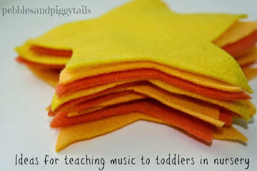 I always teach them a song about the season we are in. I try to find an item they can all hold as we sing. They are usually soft with lots of wear and tear. I find stuff at Dollar Tree or use felt. Some ideas include:
