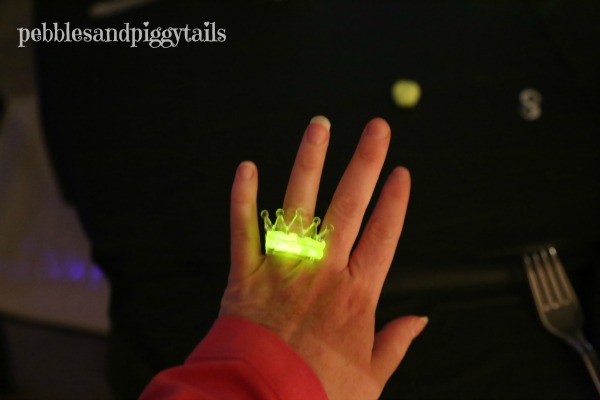 Hi folks! My son recently had a birthday and we decorated for his special day with glow-in-the-dark party supplies. This idea came to me as I was perusing the aisles at Walmart trying to figure a way to decorate for a 12 year old with being too cheezy or un-cool (anyone else been there?). During Halloween time, my Walmart has a huge section of glowing decorations and favors. Although it was only a family party this year, I wanted his day to still be awesome. Decorating with glow in the dark supplies was a cinch and a great surprise! Of course this glow in the dark party idea works best for night time or early morning celebrations.